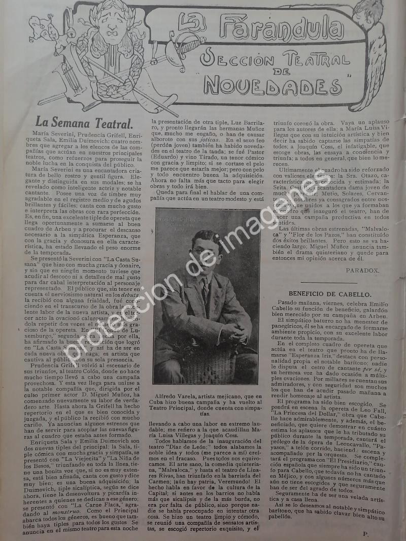 AFICHE ANTIGUO 1912 EL ACTOR ALFREDO VARELA Y OTROS