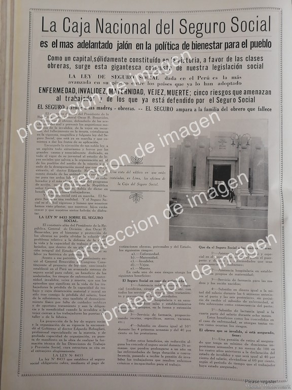 AFICHE ANTIGUO DE PERU, CAJA NACIONAL DEL SEGURO SOCIAL 1937
