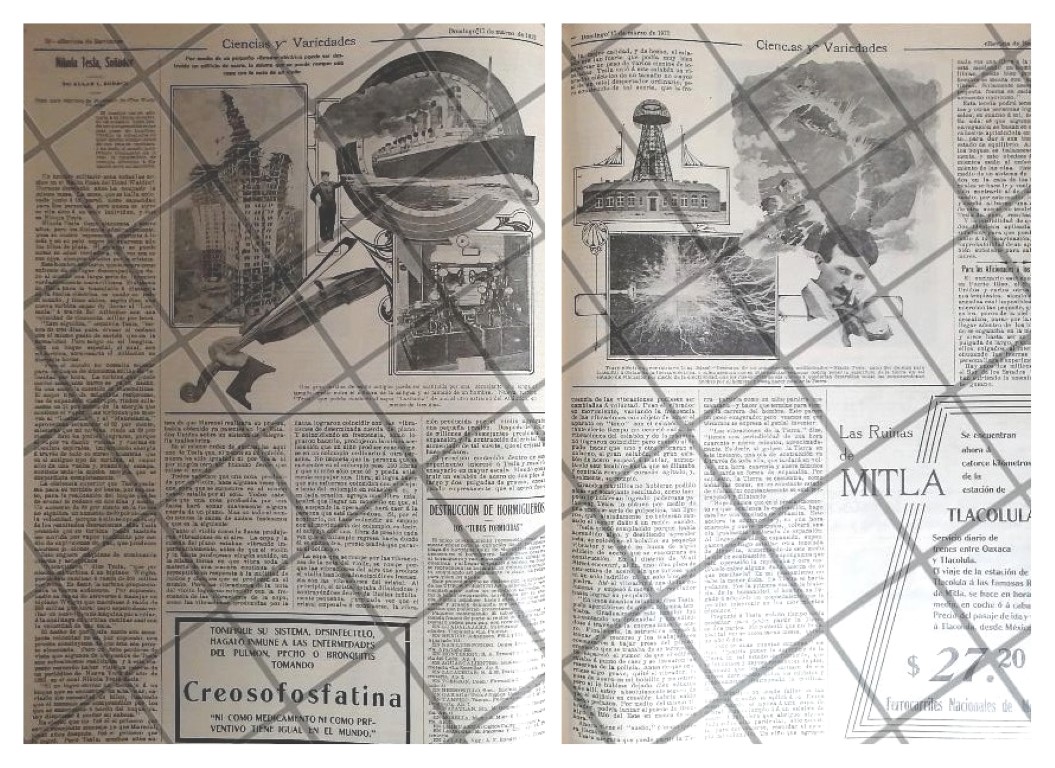 Que es lo que estamos ofreciendo !! Hoja de prensa original rescatada de publicación de esa época. . FICHA TECNICA. 1912 Una pieza de gran coleccion, ya que aqui Tesla propone varios inventos que para esas fechas eran descabellados, de hecho el titulo de esta nota es TESLA EL SOÑADOR, sin pensar que muchos fueron una realidad., aqui aparece su famoso sistema para transmitir la electricidad de manera remota, un vibrador electrico que podria derribar un edificio con frecuencias, una turbina que hoy en dia es una realidad, etc . Cientificos Inventores . Epoca Revolicionaria . .- Material: Papel .- Original: Si .- Hojas: 2 .- Medidas: 34 X 25 Cms +- .- Condiciones: Mire la imagen .- No incluye marco .- L.I. REVDEREV-1912-T1 .- No es periodico completo. .- Contiene otras notas .- Las hojas originales no tienen marcas de cuadricula ni leyendas . Referencias: .- Historiografia antigua .- Notas de prensa antigua .- Recortes de periódicos Mexicanos .- Notas periodísticas antiguas .- Tienda de Historiografia antigua .- notas antiguas de la Alta sociedad Mexicana .- Afiches retro de México