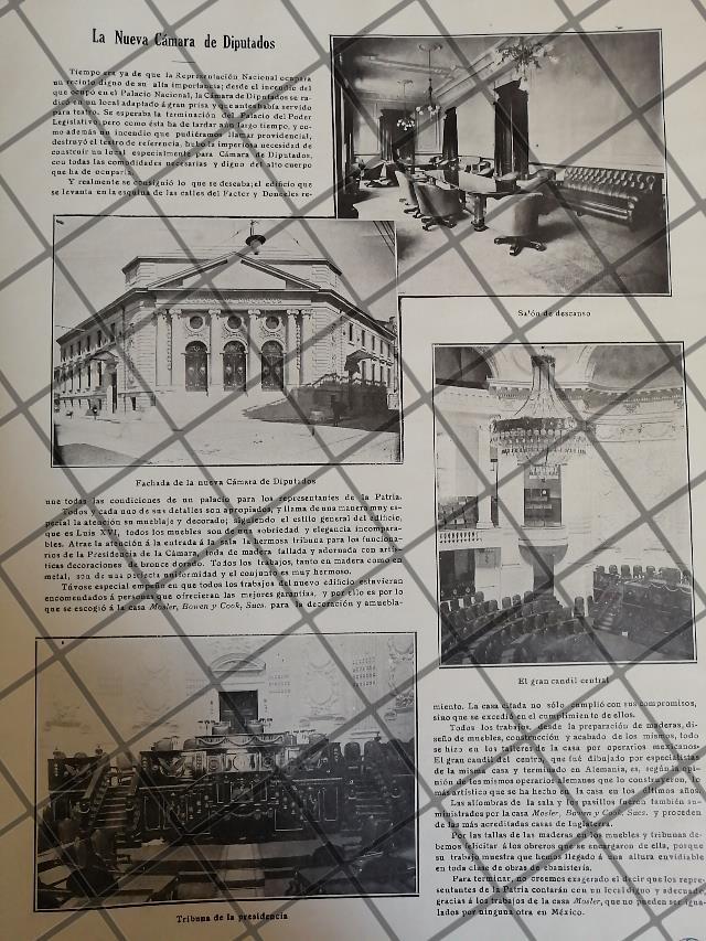 Hoja de prensa original rescatada de publicación de esa época. . FICHA TÉCNICA: 1910 . Edificios Politica . .- Material: Papel .- Contiene otras notas ajenas a la imagen en cuestion. .- Original: Si .- Hojas: 1 .- Medidas: 33 x 26 Cms +- .- Condiciones: Mire la imagen .- No incluye marco .- L.I. ELMDOILS-1910-T2 .- No es una revista. .- Las hojas originales no tienen marcas de cuadricula ni leyendas. . Referencias: .- Historiografia antigua .- Notas de prensa antigua .- Recortes de periódicos Mexicanos .- Notas periodísticas antiguas .- Tienda de Historiografia antigua .- notas antiguas de la Alta sociedad Mexicana .- Afiches retro de México