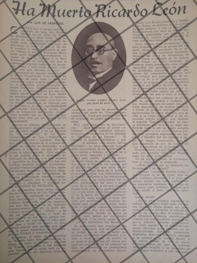 AFICHE ANTIGUO MUERE EL ESCRITOR RICARDO LEON ROMAN 1944