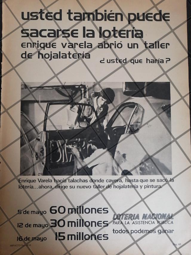 Que es lo que estamos ofreciendo !! Cartel o afiche publicitario original de esa epoca. FICHA TECNICA: .- Material: Papel .- Original: Si .- Hojas: 1 .- Medidas: 35 x 25 Cms +- .- Condiciones: Mire la imagen .- No incluye marco .- L.I. LT-078 .- No es una revista. .- Contiene otras notas .- Las hojas originales no tienen marcas de cuadricula ni leyendas Referencias: .- Publicidad antigua de la loteria nacional .- Publicidad retro Mexicana .- Recortes de periodicos Mexicanos .- Periodicos antiguos Mexicanos .- Carteles publicitarios vintage