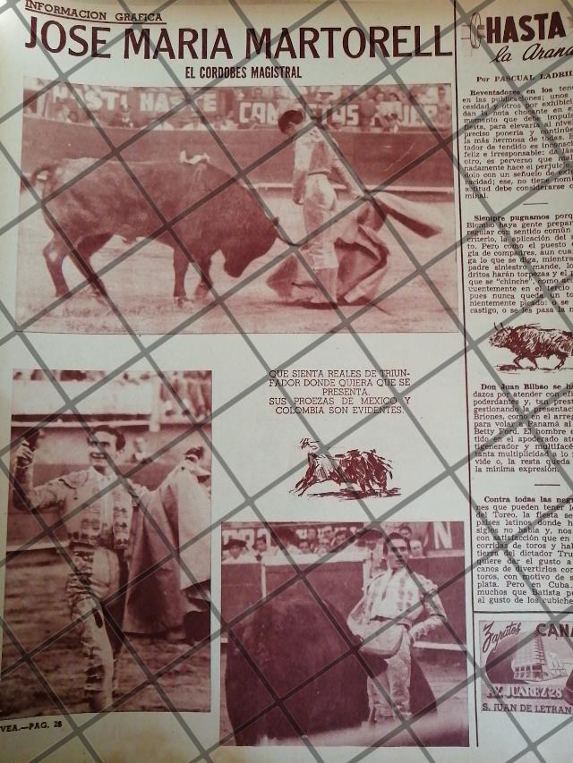 AFICHE ANTIGUO TORERO JOSE MARIA MARTORELL EN MEXICO 1954