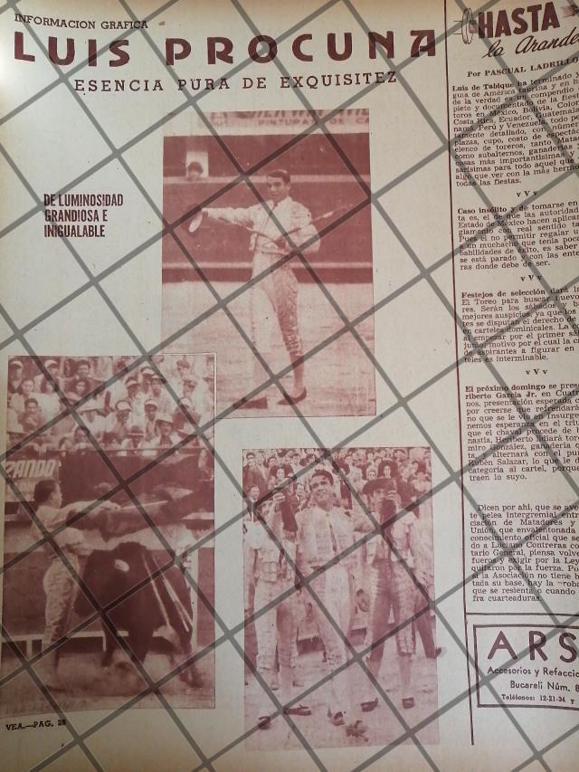 AFICHE ANTIGUO TORERO LUIS PROCUNA MONTES. 1950s 2