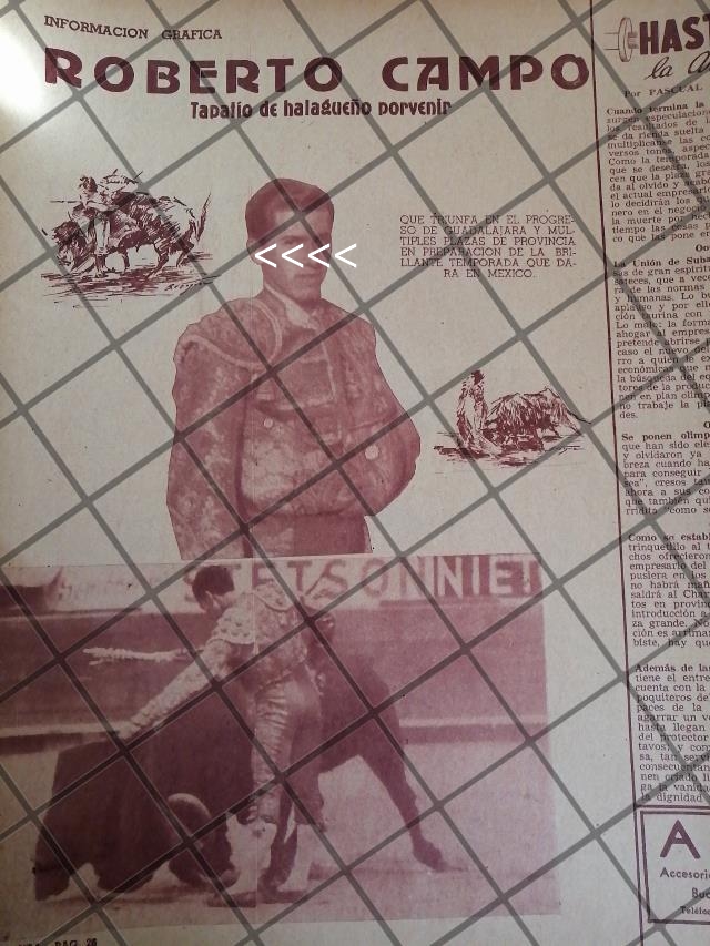 AFICHE ANTIGUO TORERO ROBERTO CAMPO 1954 /RARO