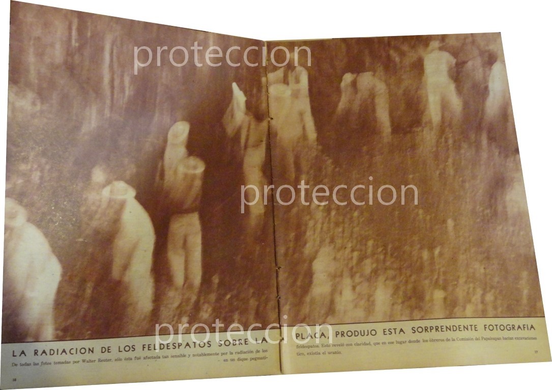Que es lo que estamos ofreciendo !! Hoja de prensa original extraida de publicacion de esa epoca. FICHA TECNICA: Estas fueron unas de las mas famosas fotografias de Reuter, en que por accion de la radiacion salieron las fotografias con esa extraña condicion, que aunque era algo ya conocido por la ciencia, esto se oculto y de esto hubo consecuencias en la salud que se supieron hasta años despues. .- Material: Papel .- Original: Si .- Hojas: 2 .- Medidas: 36 x 25 Cms +- .- Condiciones: Mire la imagen .- No incluye marco .- L.I. SMPRE-1956-57 .- No es una revista. .- Contiene otras notas .- Las hojas originales no tienen marcas de cuadricula ni leyendas Referencias: .- Historiografia antigua .- Notas de prensa antigua .- Recortes de periodicos Mexicanos .- Notas periodisticas antiguas .- Tienda de Historiografia antigua .- notas antiguas de la Alta sociedad Mexicana .- Afiches retro de Mexico