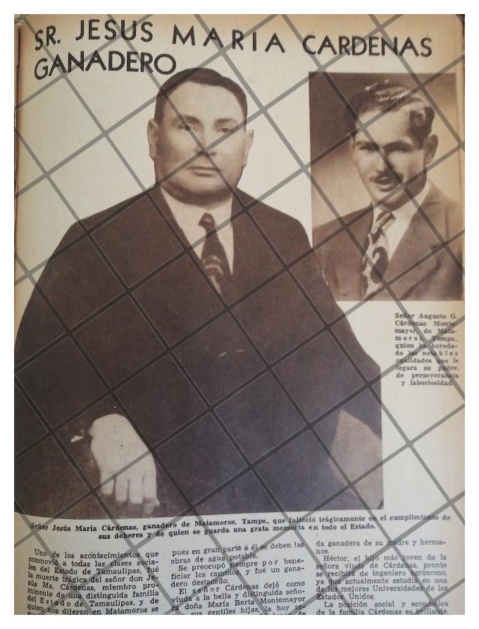 Que es lo que estamos ofreciendo !! Hoja de prensa original rescatada de publicación de esa época. . FICHA TECNICA. 1944 Y su Padre Jesus Maria Cardenas Importantes Ganaderos de esa localidad . .- Material: Papel .- Original: Si .- Hojas: 1 .- Medidas: 27 X 18 Cms +- .- Condiciones: Mire la imagen .- No incluye marco .- L.I. REVDEREV-1944-XF-T10 .- No es revista completo. .- Contiene otras notas .- Las hojas originales no tienen marcas de cuadricula ni leyendas . Referencias: .- Historiografía antigua .- Notas de prensa antigua .- Recortes de periódicos Mexicanos .- Notas periodísticas antiguas .- Tienda de Historiografía antigua .- notas antiguas de la Alta sociedad Mexicana .- Afiches retro de México