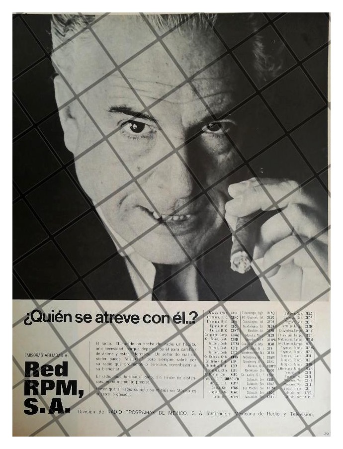 Que es lo que estamos ofreciendo !! Hoja de prensa original rescatada de publicación de esa época. . FICHA TECNICA. Red RPM S.A Difusoras de Radio Radio Difusoras Emisoras de Radio . .- Material: Papel .- Original: Si .- Hojas: 1 .- Medidas: 33 x 25 Cms +- .- Condiciones: Mire la imagen .- No incluye marco .- L.I. OTROS-04 .- No es periodico completo. .- Contiene otras notas .- Las hojas originales no tienen marcas de cuadricula ni leyendas . Referencias: .- Historiografia antigua .- Notas de prensa antigua .- Recortes de periódicos Mexicanos .- Notas periodísticas antiguas .- Tienda de Historiografia antigua .- notas antiguas de la Alta sociedad Mexicana .- Afiches retro de México