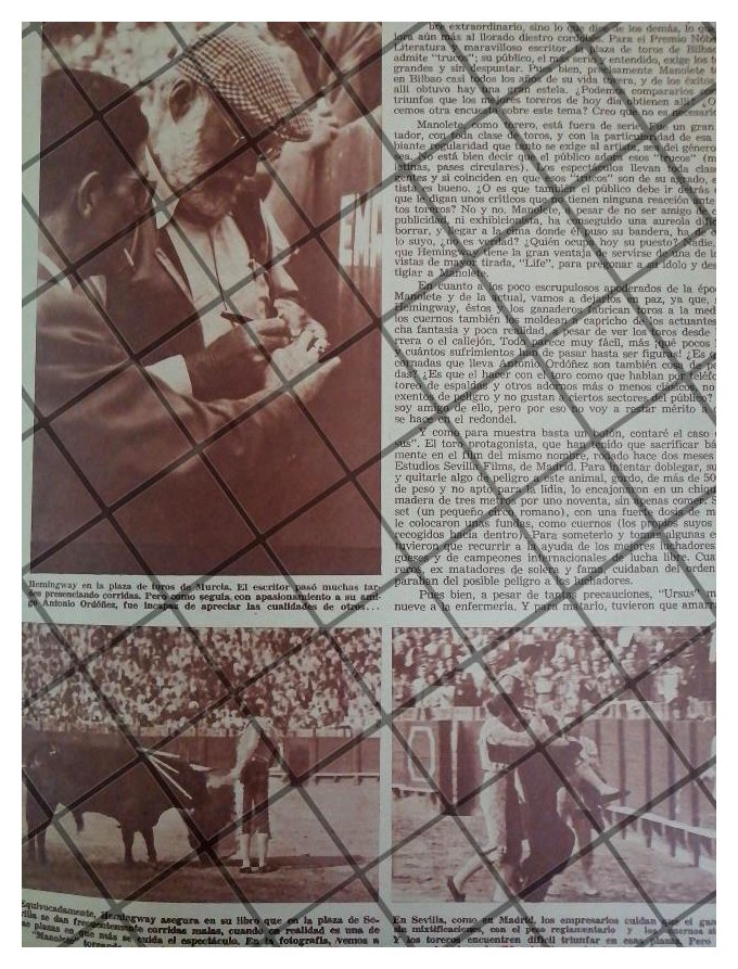 Que es lo que estamos ofreciendo !! Hoja de prensa original rescatada de publicación de esa época. . FICHA TÉCNICA: 1944 HEMINGWAY NO SABIE DE TOROS. Es un reportaje que critica a Hemingway por un escandalo en el que escribio contra el extinto Manolete y los toros en general de lo que al parecer derbo en su libro La ultima tarde. . Escritores Toros Tauromaquia . .- Material: Papel .- Original: Si .- Hojas: 2 .- Medidas: 33 x 25 Cms +- .- Condiciones: Mire la imagen .- No incluye marco .- L.I. LT-87 .- No es una revista. .- Contiene otras notas .- Las hojas originales no tienen marcas de cuadricula ni leyendas . Referencias: .- Historiografia antigua .- Notas de prensa antigua .- Recortes de periódicos Mexicanos .- Notas periodísticas antiguas .- Tienda de Historiografia antigua .- notas antiguas de la Alta sociedad Mexicana .- Afiches retro de México