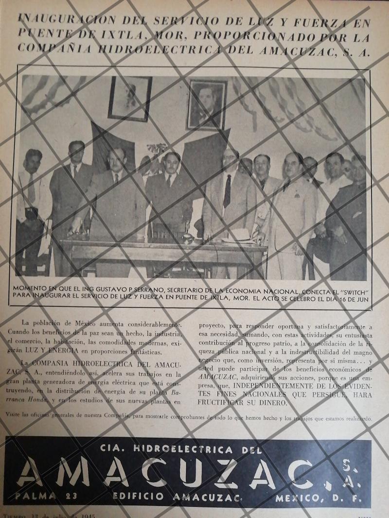 AFICHE RETRO. INAUGURAN EL AMACUZAC EN IXTLA. MORELOS 1945