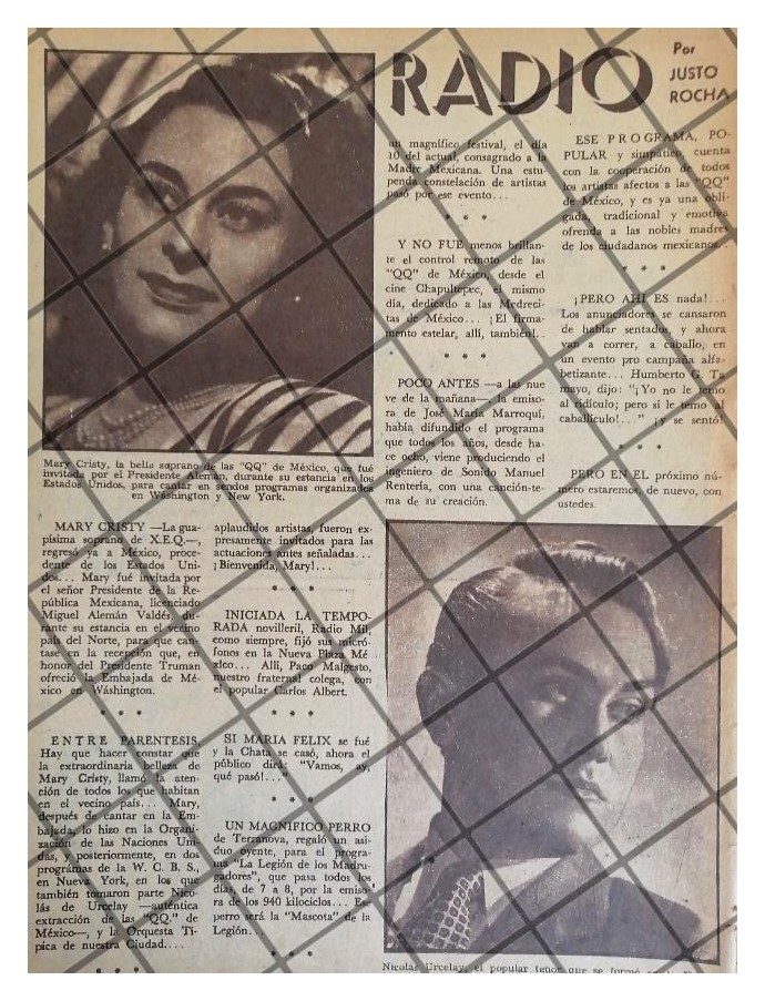 Que es lo que estamos ofreciendo !! Hoja de prensa original rescatada de publicación de esa época. . FICHA TECNICA. Cantantes Actores Artistas Cine Difusoras de Radio Radio Difusoras Emisoras de Radio . .- Material: Papel .- Original: Si .- Hojas: 1 .- Medidas: 26 x 21 Cms +- .- Condiciones: Mire la imagen .- No incluye marco .- L.I. OTROS-04 .- No es periodico completo. .- Contiene otras notas .- Las hojas originales no tienen marcas de cuadricula ni leyendas . Referencias: .- Historiografia antigua .- Notas de prensa antigua .- Recortes de periódicos Mexicanos .- Notas periodísticas antiguas .- Tienda de Historiografia antigua .- notas antiguas de la Alta sociedad Mexicana .- Afiches retro de México