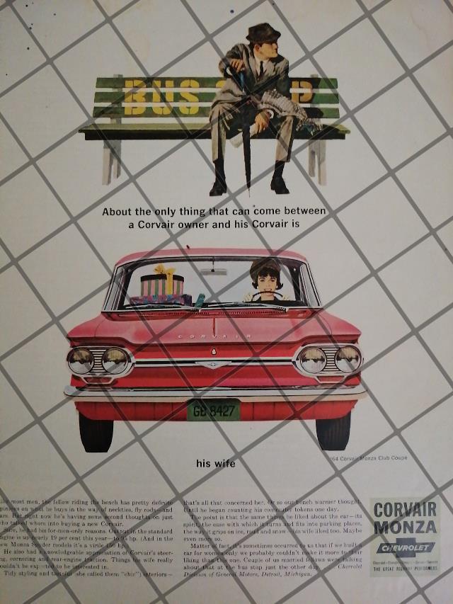 AFICHE RETRO ORIGINAL AUTOS CHEVROLET CORVAIR MONZA 1964-1046