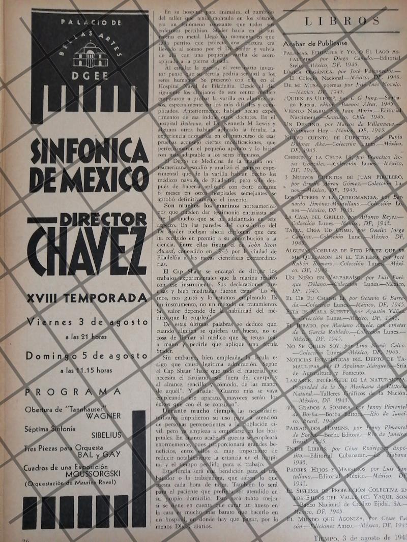 Que es lo que estamos ofreciendo !! Hoja de prensa original rescatada de publicación de esa época. FICHA TÉCNICA: Musicos Compositores Orquesta Sinfonica Nacional de Mexico Carlos Chavez .- Material: Papel .- Epoca: 1946 .- Original: Si .- Hojas: 1 .- Medidas: 27 X 6 Cms +- .- Condiciones: Mire la imagen .- No incluye marco .- L.I. TMPO-01 .- No es una revista. .- Contiene otras notas .- Las hojas originales no tienen marcas de cuadricula ni leyendas Referencias: .- Historiografia antigua .- Notas de prensa antigua .- Recortes de periódicos Mexicanos .- Notas periodísticas antiguas .- Tienda de Historiografia antigua .- notas antiguas de la Alta sociedad Mexicana .- Afiches retro de México