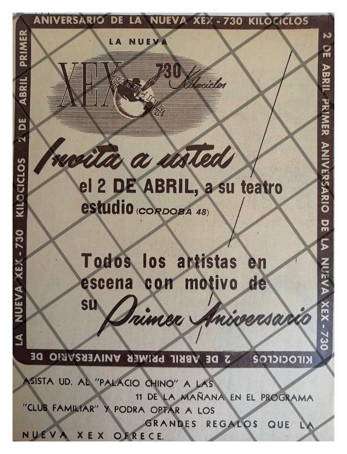 AFICHE RETRO RADIO DIFUSORA XEX 1952 1ER ANIVERSARIO