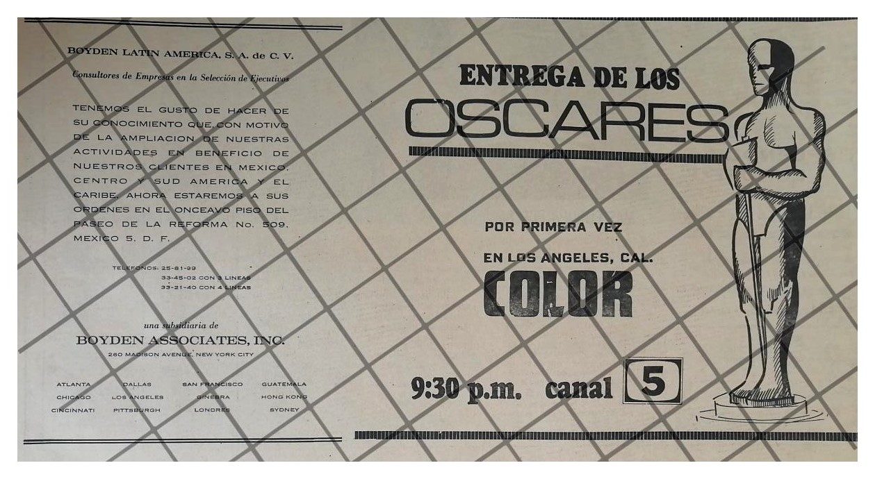 AFICHE RETRO TELEVISA. PREMIOS OSCAR 1969 CANAL 2