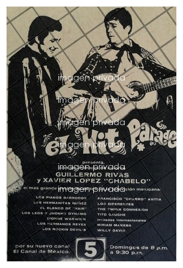 AFICHE RETRO TELEVISA PROGRAMA EL HIT PARADE. CHABELO 1969