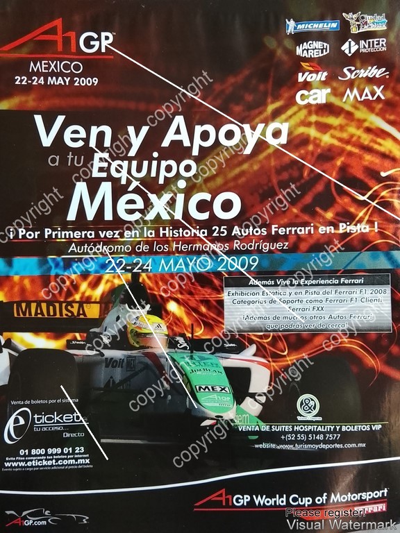 AFICHE VINTAGE. PRIMER CARRERA A1 GRAND PRIX MEXICO 2009 FERRARI /RARO