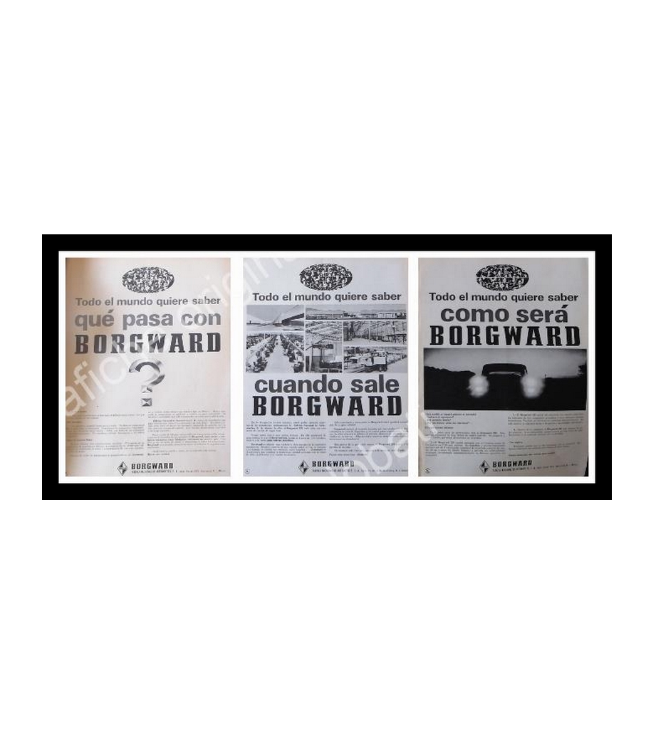 Si ya de por si es dificil encontrar un afichede Borgward, es casi imposible conseguir estos3 de la preventa o espectativa de estos Autosuna campaña muy agresiva que se lanzo en todoMexico cuando aun estaban armandolosNO SE VENDEN POR SEPARADOFICHA TECNICA:.- Material: Papel, Original.- Medidas: 33 X 25 Cms.- Condiciones: Mire la imagen.- No incluye marco.- L.I. AutosNOTAS:Afiches antiguos de Autos