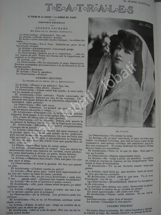 CARTEL ANTIGUO ORIGINAL DE ACTRIZ IDA FULLER Y OBRA TEATRAL 1909 /FEP