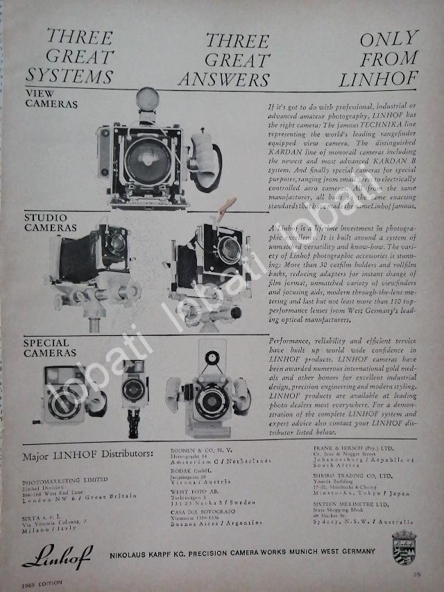 CARTEL ANTIGUO ORIGINAL DE AFICHE DE CAMARAS LINHOF. NIKOLAUS KARPF 1969 /408