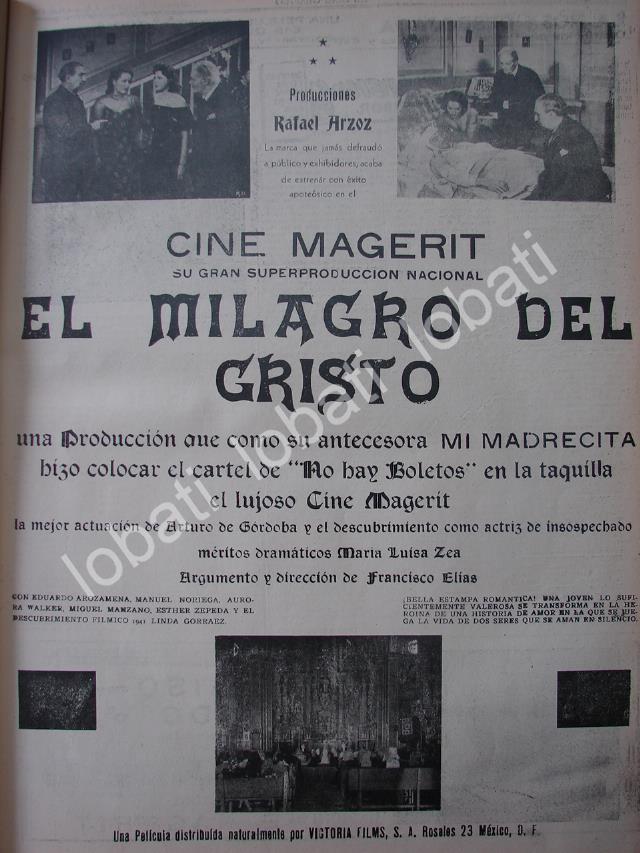 Sé el primero en valorar “CARTEL ANTIGUO ORIGINAL DE AFICHE DE LA PELICULA EL MILAGRO DEL CRISTO 1941 /N61”