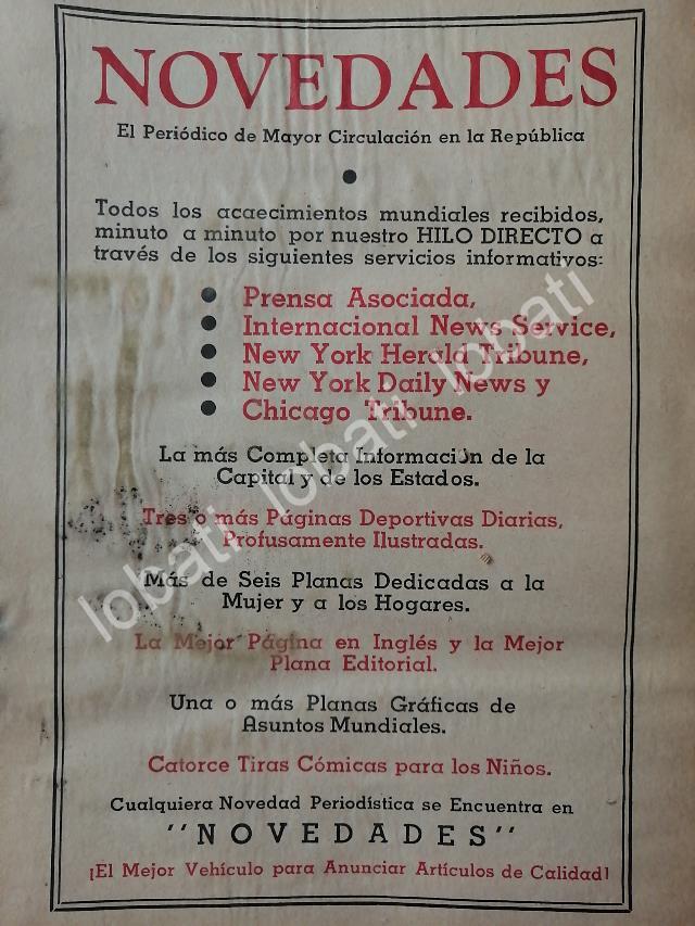 CARTEL ANTIGUO ORIGINAL DE AFICHE DE PERIODICOS NOVEDADES 1942. / N90