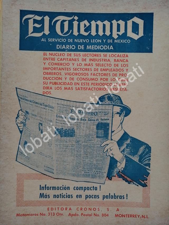 CARTEL ANTIGUO ORIGINAL DE AFICHE DEL PERIODICO EL TIEMPO 1965 / N84 MONTERREY