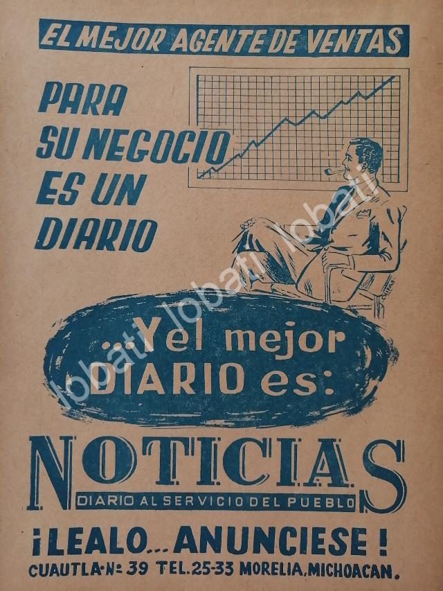 CARTEL ANTIGUO ORIGINAL DE AFICHE DEL PERIODICO NOTICIAS 1965. MORELIA. MICH / N86