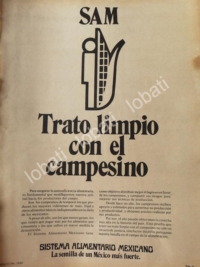 CARTEL ANTIGUO ORIGINAL DE AFICHE DEL SISTEMA ALIMENTARIO MEXICANO 1981 /13