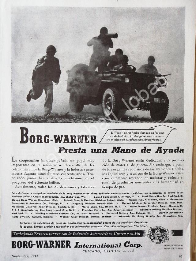 CARTEL ANTIGUO ORIGINAL DE AUTOPARTES BORG-WARNER Y GUERRA MUNDIAL 1944 /SGM