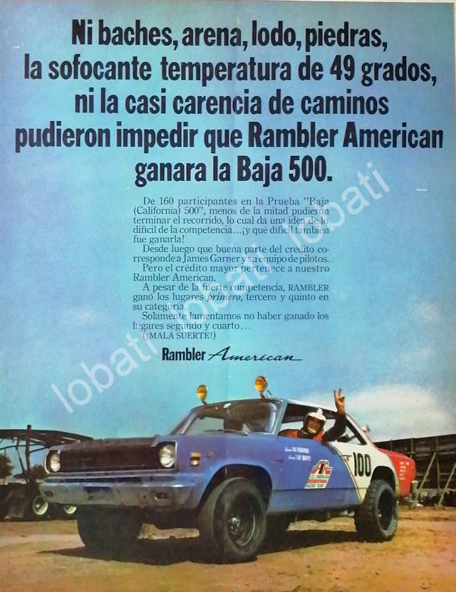 CARTEL ANTIGUO ORIGINAL DE AUTOS AMERICAN RAMBLER GANA CARRERA BAJA 500 1968 /209
