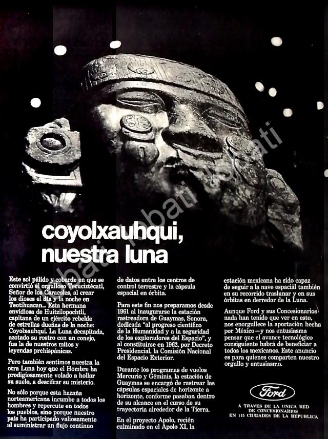 CARTEL ANTIGUO ORIGINAL DE AUTOS FORD Y EL ALUNIZAJE DEL APOLO XI ESTACION DE GUAYMAS 1969