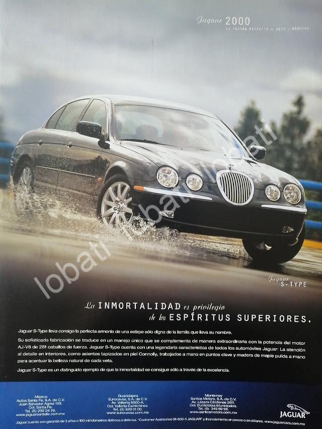 CARTEL ANTIGUO ORIGINAL DE AUTOS JAGUAR TIPO S. 2000 /962