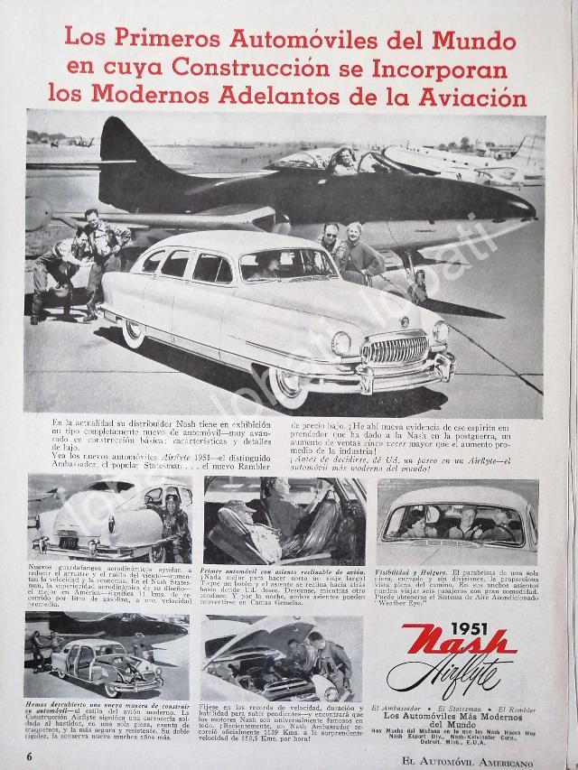 CARTEL ANTIGUO ORIGINAL DE AUTOS NASH AIRFLYTE 1951 /356