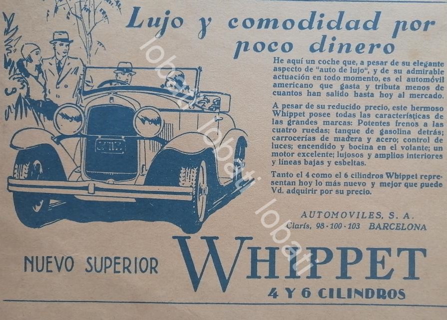 Sé el primero en valorar “CARTEL ANTIGUO ORIGINAL DE AUTOS WHIPPET 6V 1929 /975”