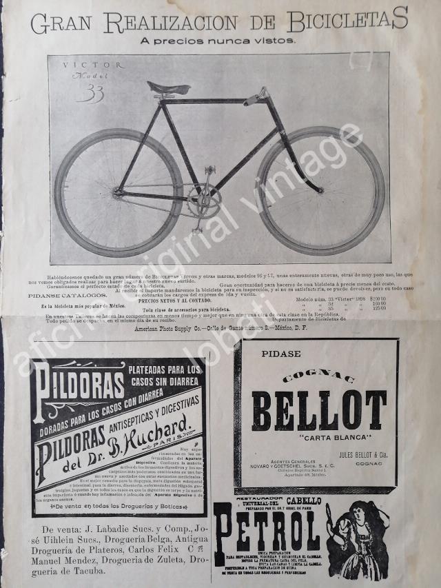 CARTEL ANTIGUO ORIGINAL DE BICICLETAS VICTOR MODEL 33 Y OTRAS PUBLICIDADES 1898