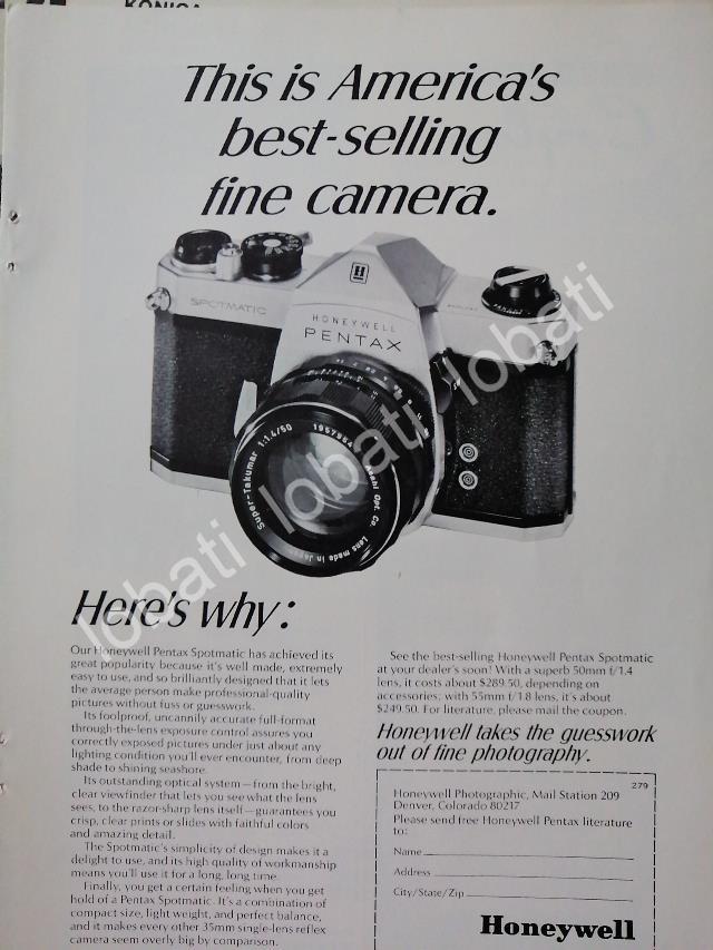 CARTEL ANTIGUO ORIGINAL DE CAMARAS HONEYWELL PENTAX SPOTMATIC 1960s /420