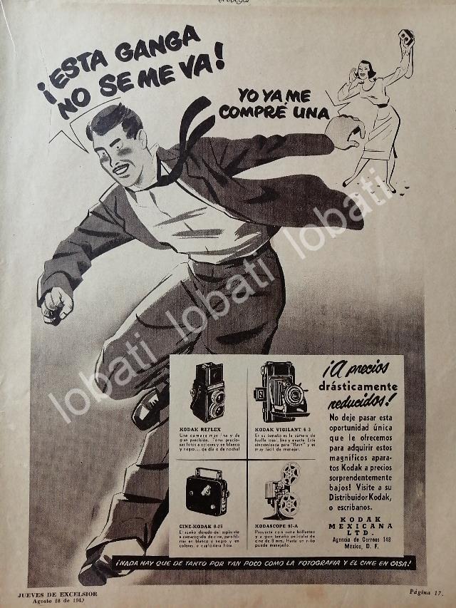 Sé el primero en valorar “CARTEL ANTIGUO ORIGINAL DE CAMARAS KODAK MEXICANA 1949 /547”