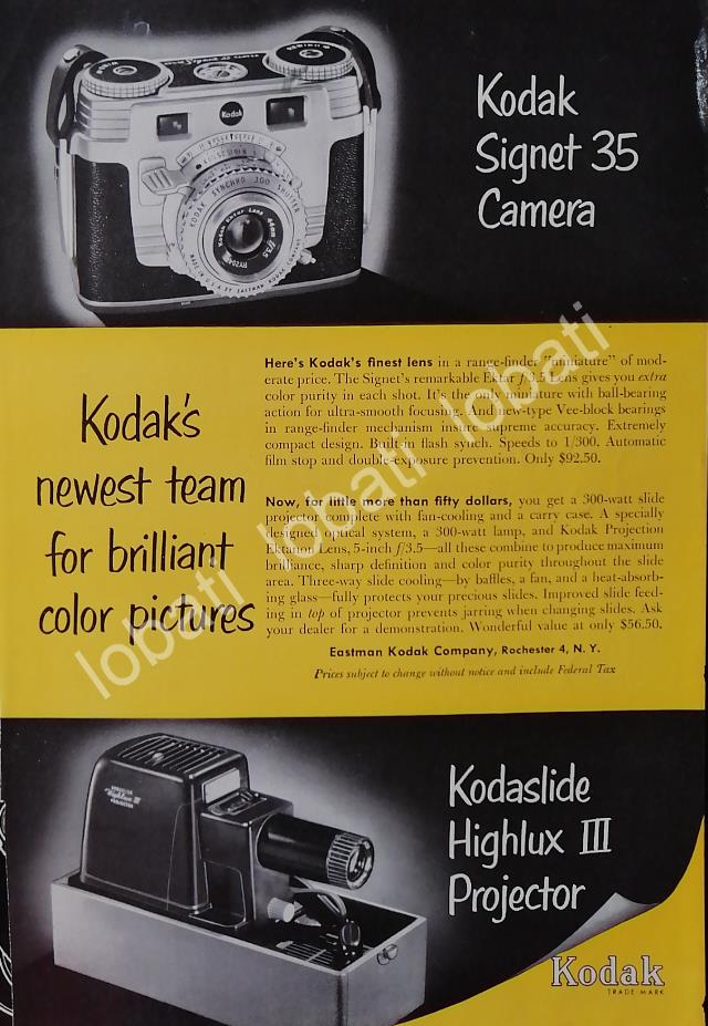 CARTEL ANTIGUO ORIGINAL DE CAMARAS KODAK SIGNET 35 & PROYECTOR HIGHLUX 1950s /479