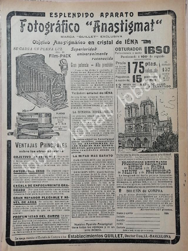 CARTEL ANTIGUO ORIGINAL DE CAMARAS QUILLET ANASTIGMAT 1913 /423 RARO