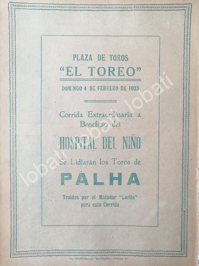 CARTEL ANTIGUO ORIGINAL DE CARTEL PLAZA DE TOROS EL TOREO, 1923 A BENEFICIO /41