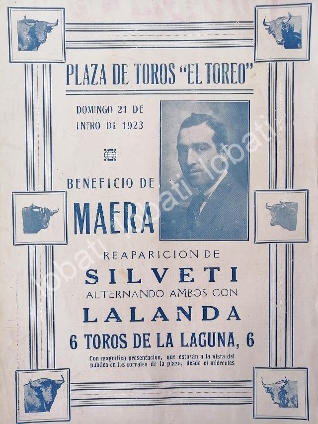 CARTEL ANTIGUO ORIGINAL DE CARTEL PLAZA DE TOROS EL TOREO, 1923 LALANDA, SILVETI ETC /43
