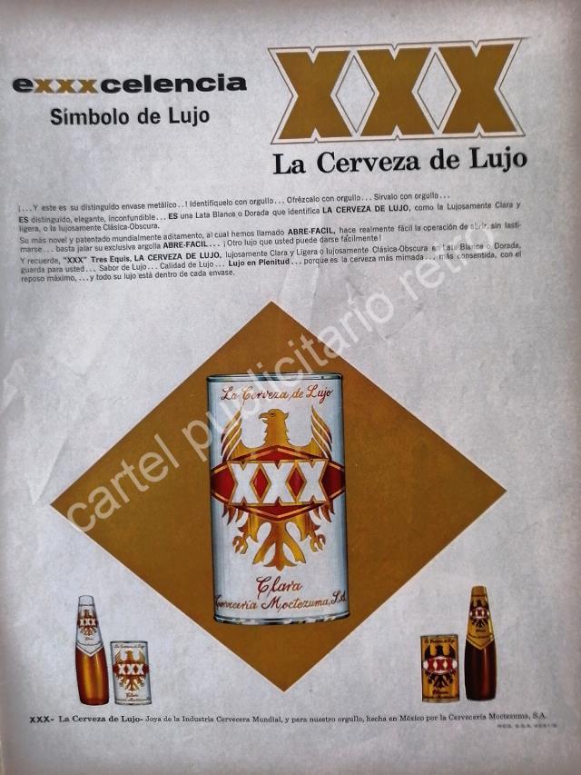 CARTEL ANTIGUO ORIGINAL DE CERVEZA XXX 1960s CERVECERIA MOCTEZUMA