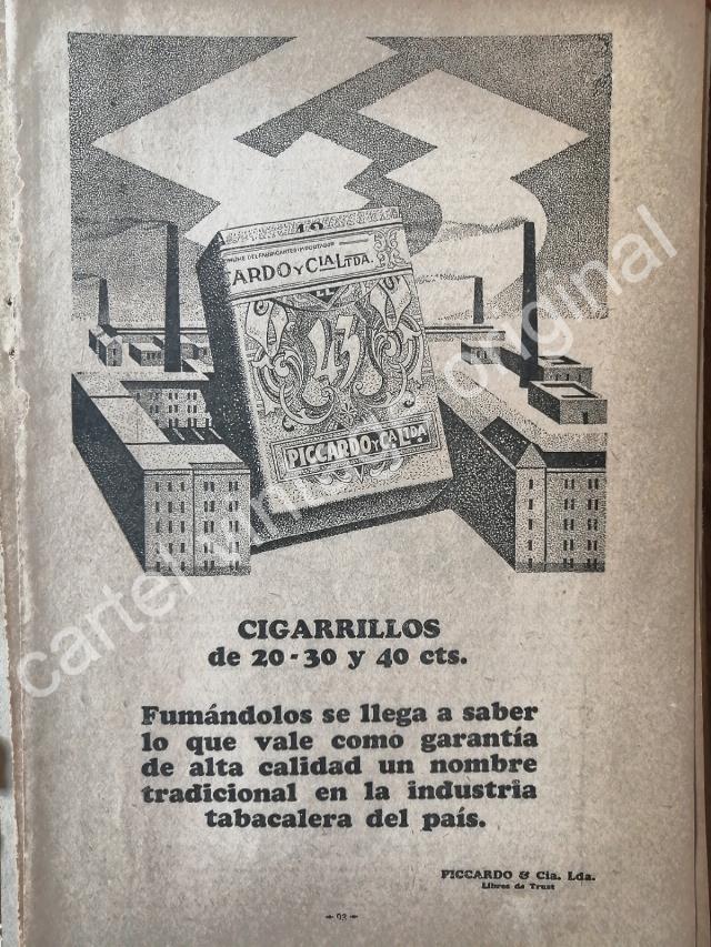 CARTEL ANTIGUO ORIGINAL DE CIGARROS 43. PICCARDO & CIA. 1929 /10
