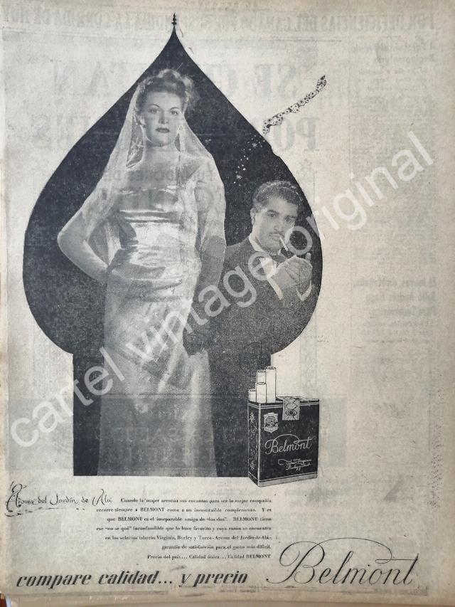 CARTEL ANTIGUO ORIGINAL DE CIGARROS BELMONT 1947 JARDIN DE ALA