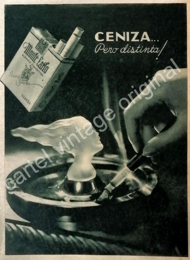 CARTEL ANTIGUO ORIGINAL DE CIGARROS MONTECARLO 1930s CENIZA