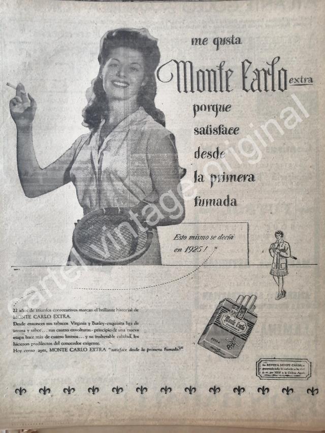 CARTEL ANTIGUO ORIGINAL DE CIGARROS MONTECARLO 1947 /9