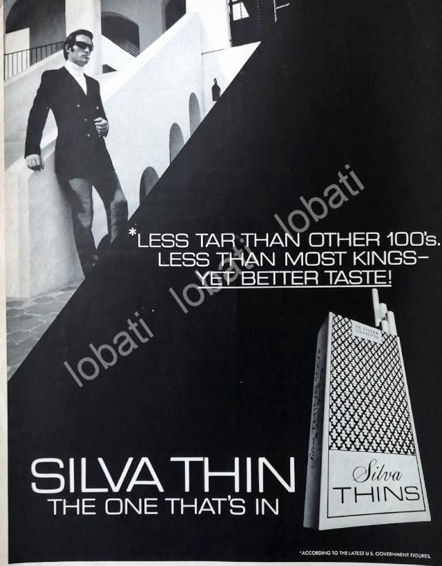 CARTEL ANTIGUO ORIGINAL DE CIGARROS SILVA THIN 100s 1970s /3
