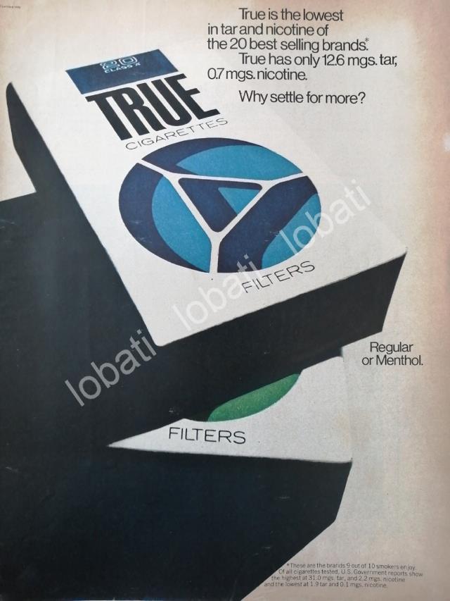 CARTEL ANTIGUO ORIGINAL DE CIGARROS TRUE FILTERS 1970s /3