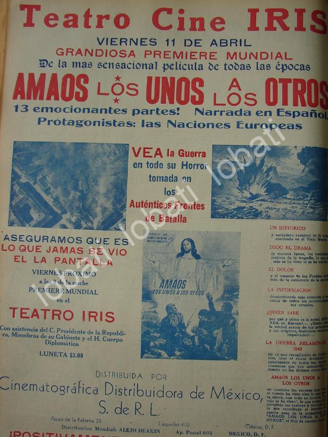Una de las primeras peliculas quetrata sobre la entonces vigenteSegunda Guerra Mundial, esta fueun existo en MexicoFICHA TECNICA:.- Material: Papel.- Original.- Medidas: 38 x 28 Cms.- Condiciones: Mire la imagen.- No incluye marco.- L.I. ELCGR-001.- No es un Loby card.- No es una pelicula, es cartelNOTAS:.- Afiches antiguos de Cine.- Publicidad antigua de cine.- Publicidad vintage de Cine.- Afiches del Cine Mexicano.- Carteles de cine vintage.- Afiches de cine
